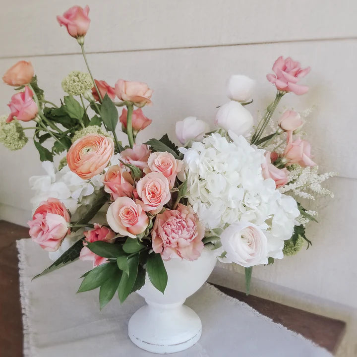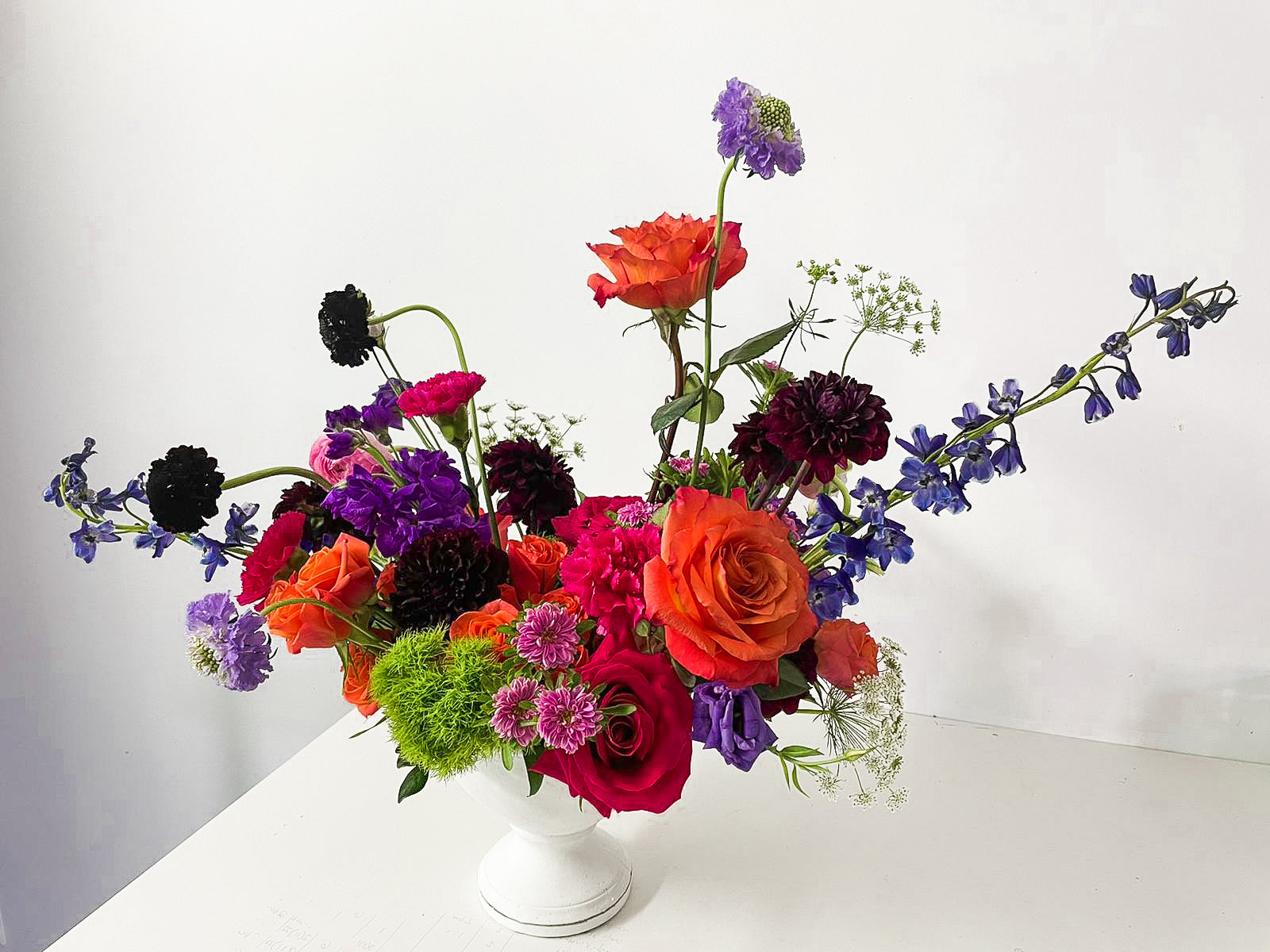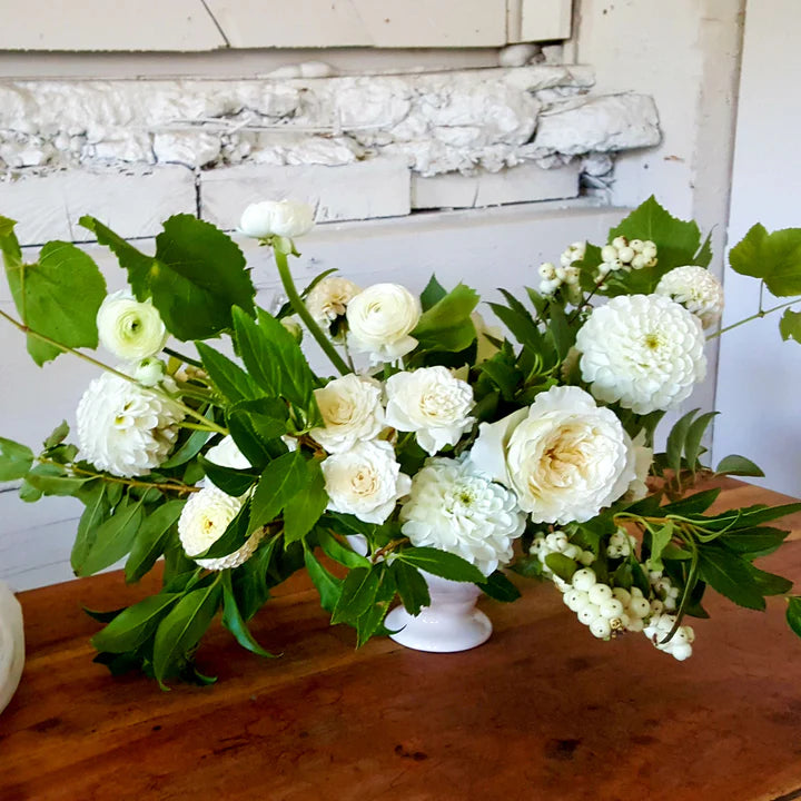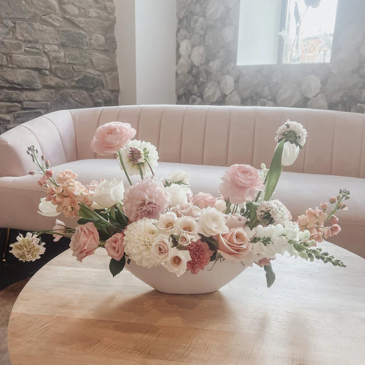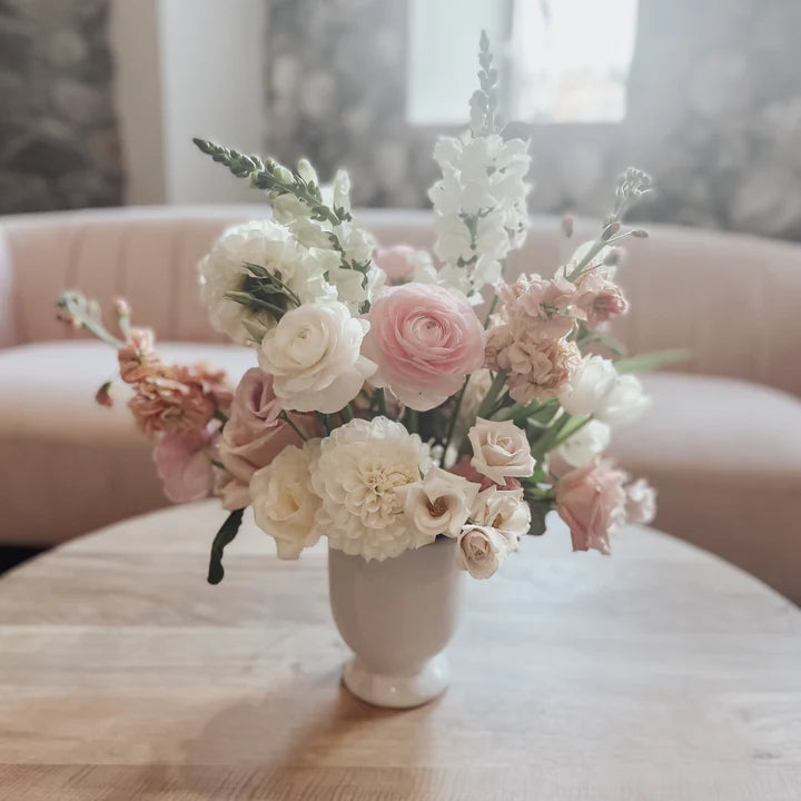 Our signature style arranged in a beautiful container or compote. Enjoy a mix of perfectly placed seasonal blooms in a beautiful and unique colour scheme.