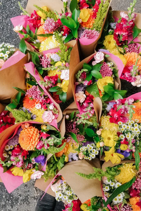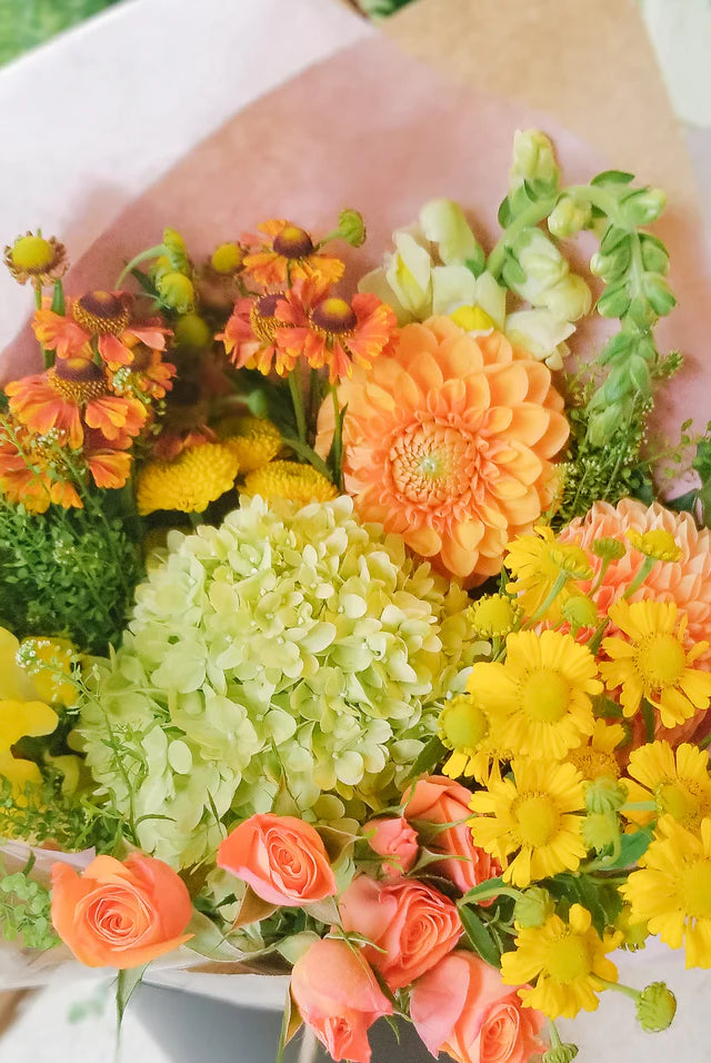 Our collection of beautiful fresh blooms in seasonal colours and varieties. Available in both hand tied bouquets or expertly arranged arrangements.
