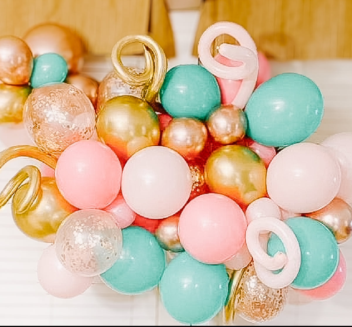 These balloon bursts are created using a variety of balloon sizes and colours- they are completely air-filled making them last longer then traditional helium balloons. They look fabulous hung on staircases and fences.