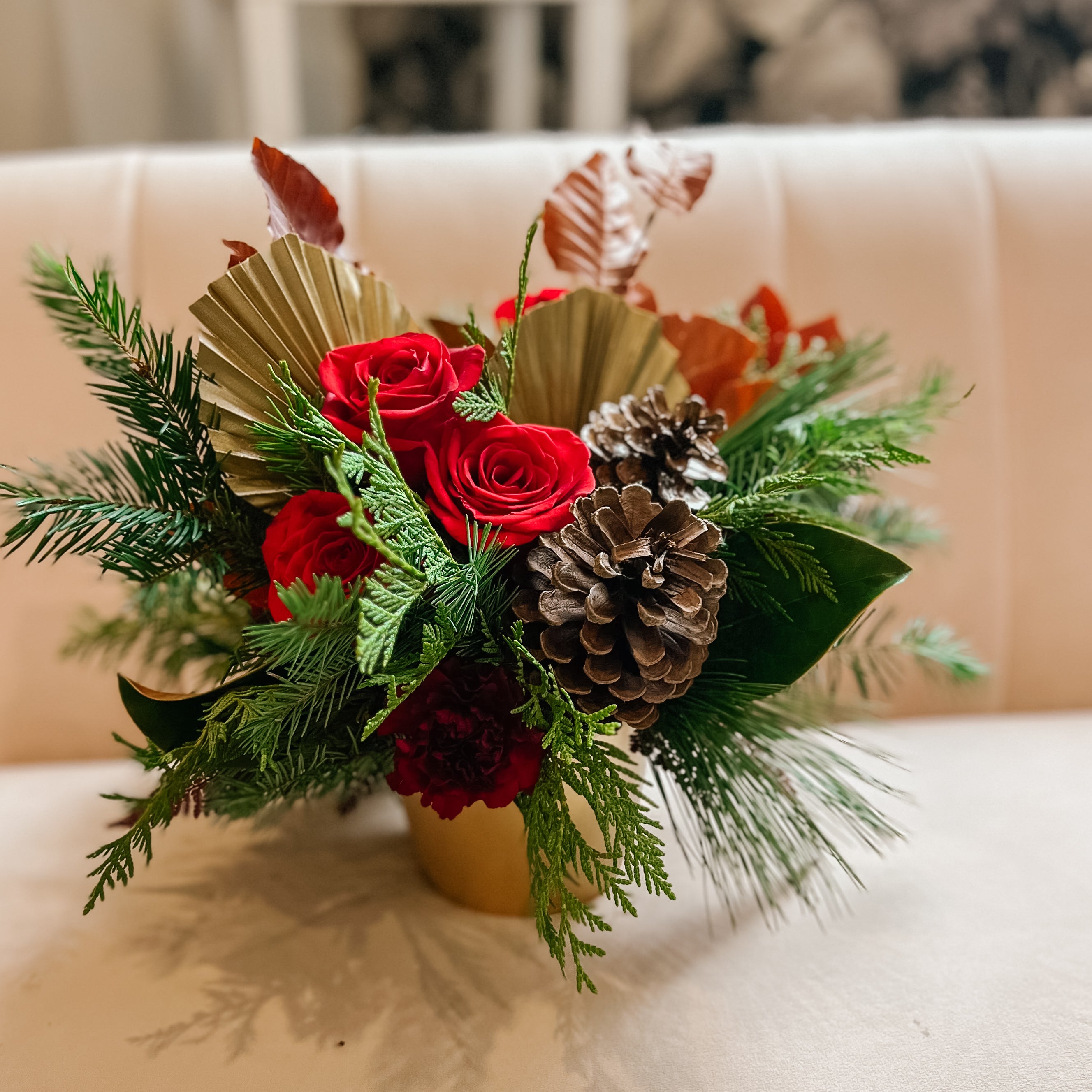 This arrangement has a romantic and holiday feel to it. Place it along side your favourite candles on your coffee table or kitchen island and enjoy the festive feeling it will bring.