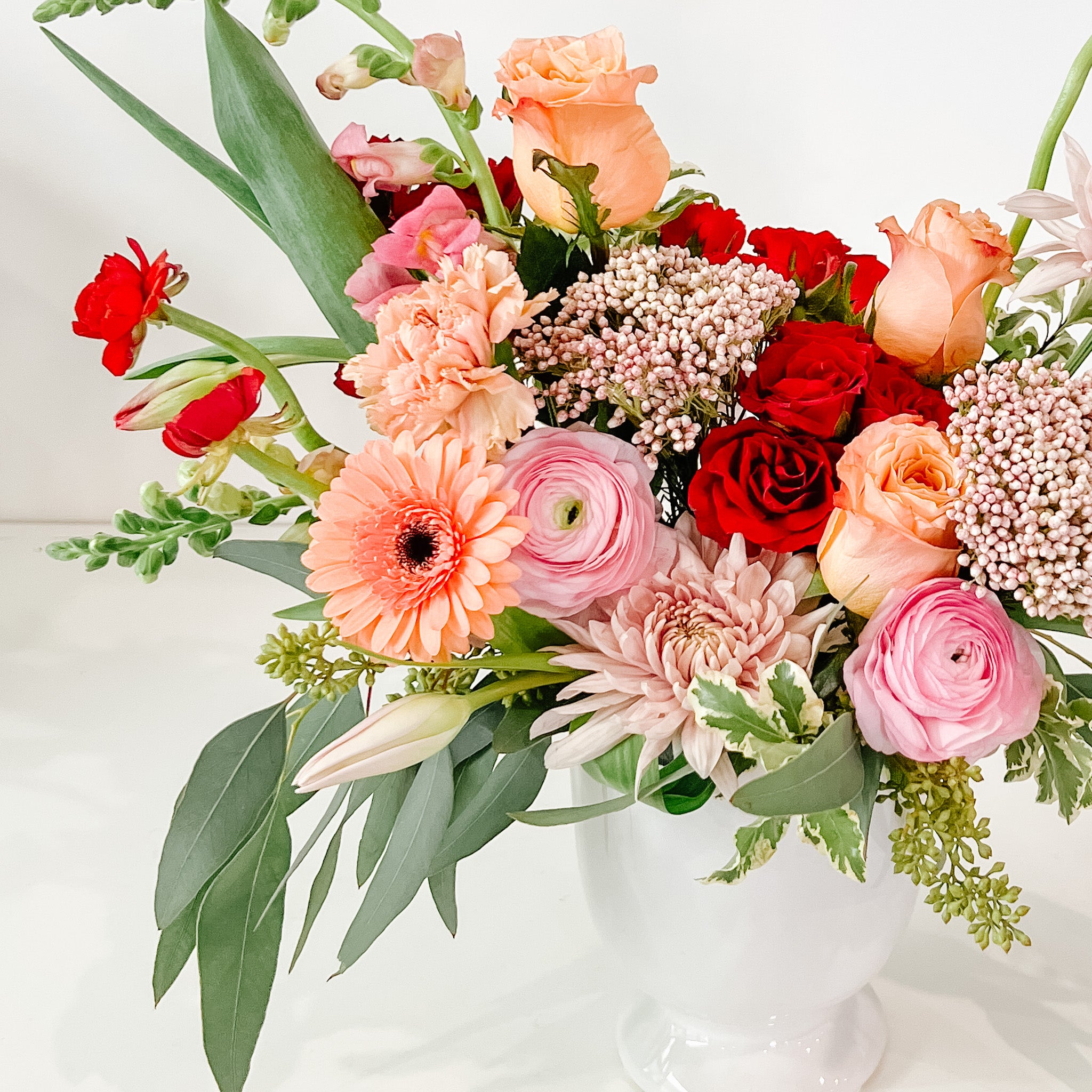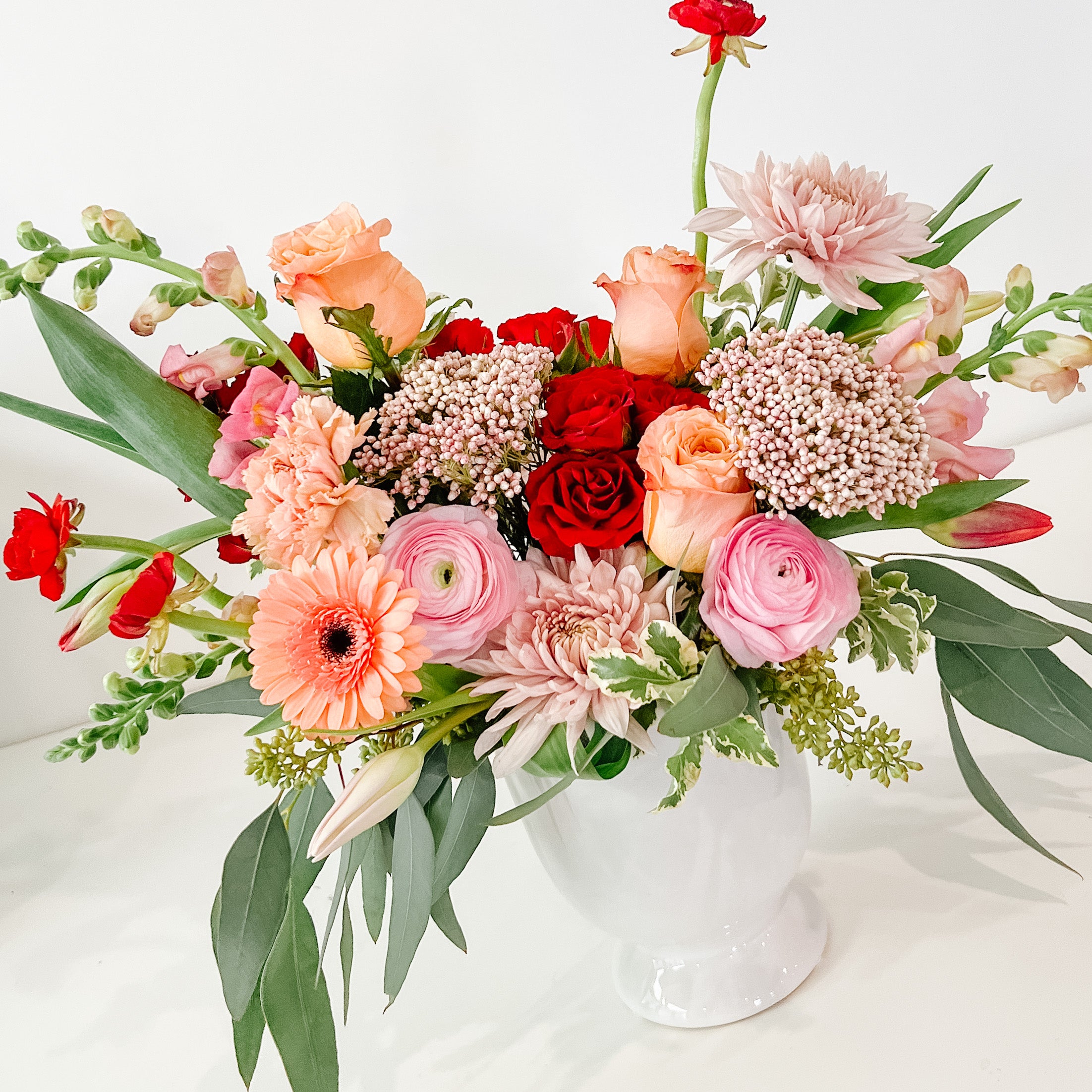 Soft and elegant with shades of peach, white, pink and a hint of red. A beautiful way to say "I love you"